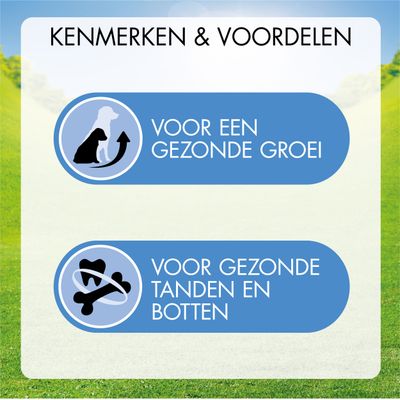 Purina® Bonzo® Junior met Kip, Groenten en met Melk bevat extra eiwit en de juiste vitamine gehaltes die puppy's nodig hebben.