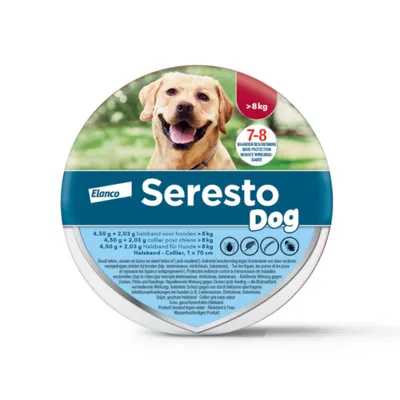 • Halsband 70 cm: Seresto 4,50 g + 2,03 g Halsband voor honden > 8 kg. Voor behandeling (Ctenocephalides felis) en preventie van vlooieninfestaties (Ctenocephalides felis, C. canis).